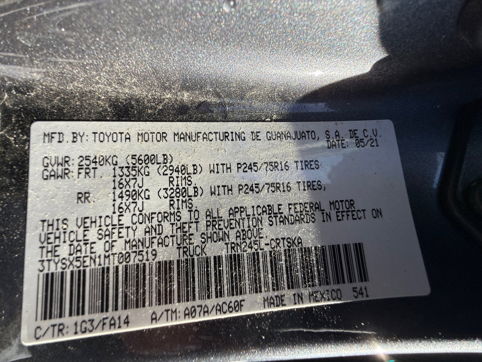 - Vehicle Name: Toyota Tacoma 4WD