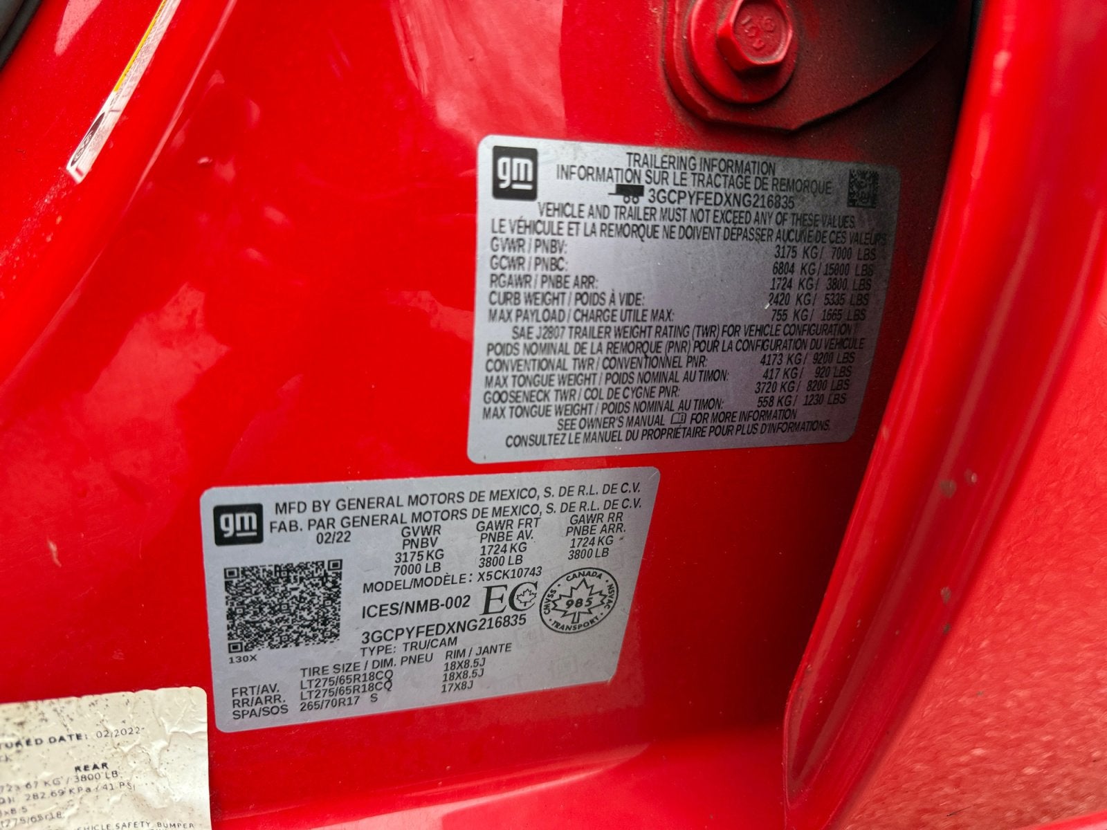 GVWR, 7000 LBS. (3175 KG)