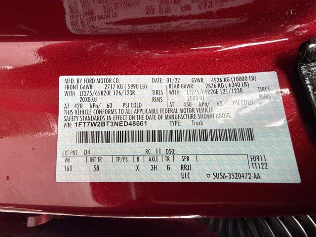 Irwin Automotive Group is proud to present you with another True Market Priced Pre-Owned Vehicle. Transparent Pricing Of $ 61662 !! This 2022 Ford F-250SD Lariat is loaded with the following Factory Options: 4WD Chrome Package (6" Angular Bright Polished Step Bars, Body-Color Door Handles w/Chrome Insert, Chrome Exhaust Tip, PowerScope Trailer Tow Mirrors w/Heat, Unique Chrome Mirror Caps, and Wheels: 18" Chrome PVD Aluminum), FX4 Off-Road Package (Hill Descent Control, Off-Road Specifically Tuned Shock Absorbers, and Unique FX4 Off-Road Box Decal), GVWR: 10,000 lb Payload Package, Lariat Ultimate Package (Ambient Lighting - Fixed Color, Easy Entry®/Exit Memory Driver's Seat Feature, Intelligent Access w/Push-Button Start, LED Box Lighting, Memory Power-Adjustable Pedals, Power Heated/Ventilated Driver Seat w/Memory, Power Heated/Ventilated Passenger Seat, Power Telescoping/Tilt Steering Wheel/Column, PowerScope Trailer Tow Mirrors w/Memory, Remote Start System, Remote Tailgate Release, and Tailgate Step & Handle), Order Code 608A, Snow Plow Prep Package, 4WD, 10 Speakers, 397 Amp Alternator, 4-Wheel Disc Brakes, 6" Angular Bright Polished Step Bar, ABS brakes, Adjustable pedals, Air Conditioning, Alloy wheels, AM/FM radio: SiriusXM with 360L, Auto High-beam Headlights, Auto-dimming Rear-View mirror, Automatic temperature control, Brake assist, Bumpers: chrome, Compass, Delay-off headlights, Driver door bin, Driver vanity mirror, Dual front impact airbags, Dual front side impact airbags, Electronic Stability Control, Emergency communication system: SYNC 4 911 Assist, Engine Block Heater, Exterior Parking Camera Rear, Flow-Through Console, Front anti-roll bar, Front Bucket Seats, Front Center Armrest, Front dual zone A/C, Front fog lights, Front Leather Seating Surfaces 40/Console/40, Front reading lights, Fully automatic headlights, Heated door mirrors, Heated Steering Wheel, Illuminated entry, Leather steering wheel, Low tire pressure warning, Navigation system: Connected Navigation, Outside temperature display, Overhead airbag, Overhead console, Panic alarm, Passenger door bin, Passenger vanity mirror, Power door mirrors, Power driver seat, Power passenger seat, Power steering, Power windows, Quad Beam LED Headlamps & LED Taillamps, Radio data system, Radio: B&O Sound System by Bang & Olufsen, Rain-Sensing Windshield Wipers, Rapid-Heat Supplemental Cab Heater, Rear CHMSL Camera, Rear Parking Sensors, Rear reading lights, Rear seat center armrest, Rear step bumper, Rear window defrost
