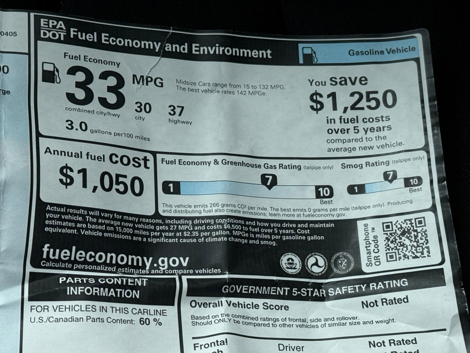 - Fuel Economy Est-Combined (MPG): 33